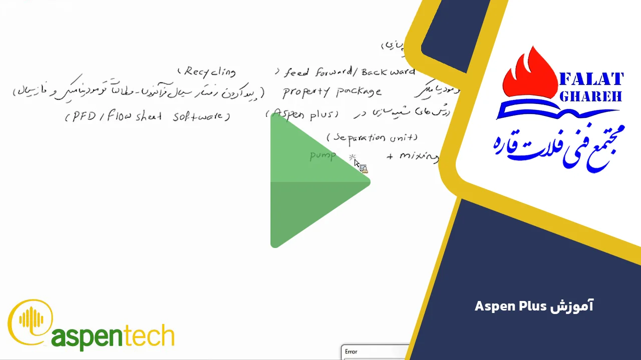 دوره آموزش نرمافزار Aspen Plus یک برنامه جامع و تخصصی است که با هدف آموزش مدلسازی و شبیهسازی فرآیندهای صنعتی و شیمیایی طراحی شده است. این دوره، تمامی ابزارها و قابلیتهای نرمافزار Aspen Plus را پوشش داده و به شما کمک میکند تا مهارتهای لازم برای طراحی، شبیهسازی و تحلیل فرآیندهای پیچیده در صنایع نفت، گاز، پتروشیمی و شیمیایی را کسب کنید.