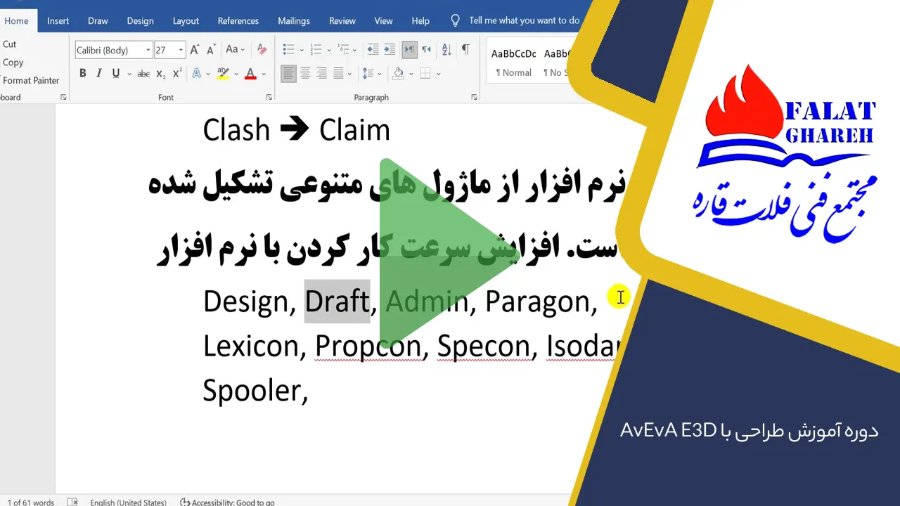دوره آموزش طراحی با AvEvA E3D مقدماتی
